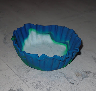 Creative Every Day the theme is "play". I have been/being(???) playing with Polymer Clay. I love the feel of it, and I love the colours. I would like to work with it again. I will plan this time what I want. These are two bowls I made by playing around with it and having no plans. I actually dont like them at all, but I thought i would put them here despite my own judgement.